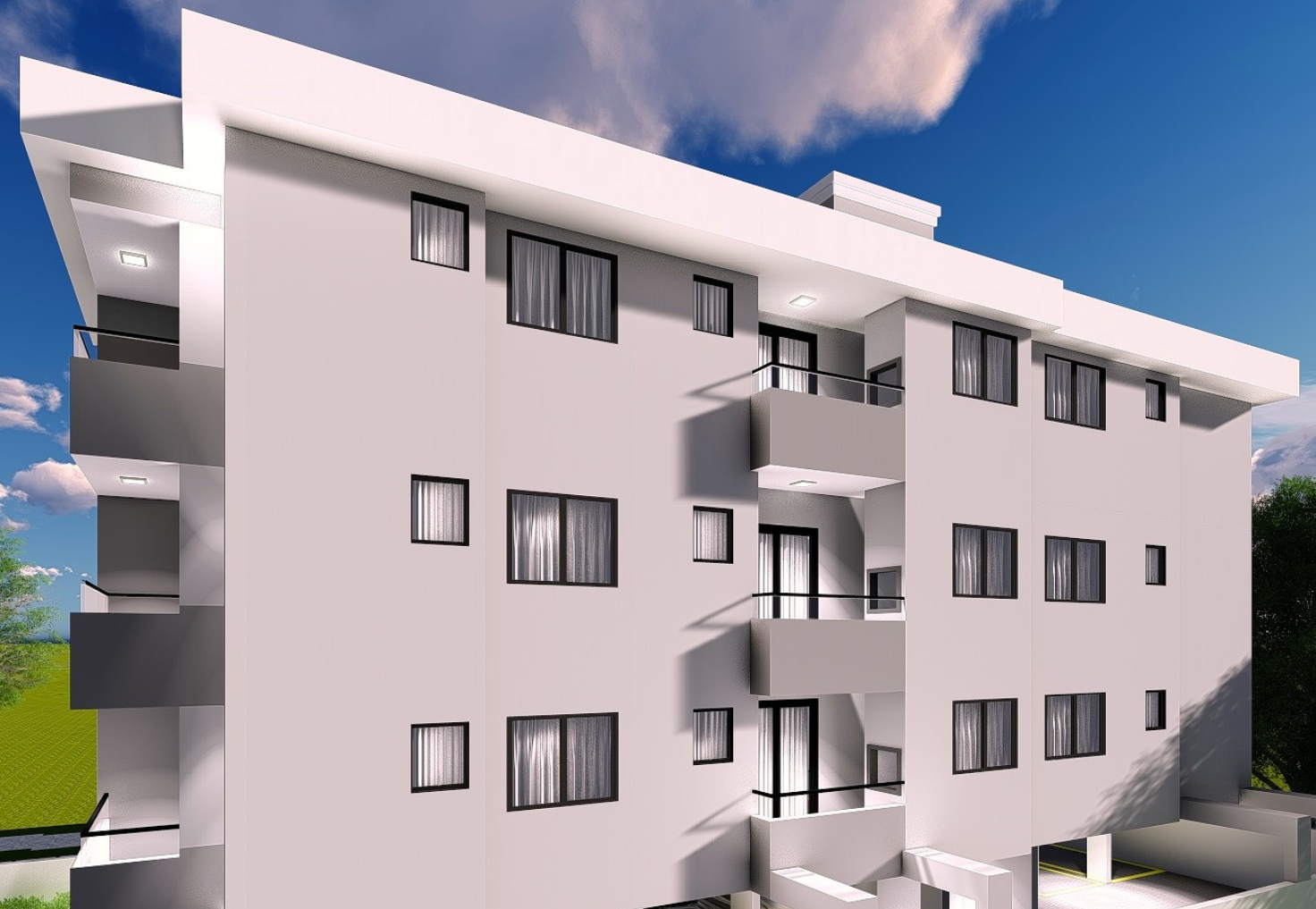 Todos os apartamentos contam com 2 quartos, sendo uma suíte, e uma sacada com churrasqueira a carvão, perfeita para momentos de lazer em família. Além disso, as unidades finais 1 e 2 possuem sacada também na suíte, oferecendo ainda mais conforto e privacidade. Cada imóvel inclui 1 vaga de garagem privativa.